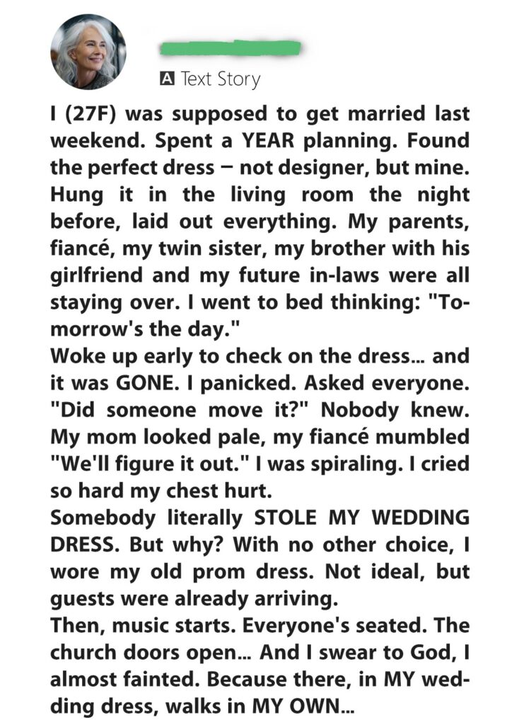 The morning of my wedding was supposed to be magical. I woke up early, heart fluttering, ready to marry the love of my life. But when I tiptoed into the living room to admire my dress one last time, the hanger swayed empty. My wedding gown—gone.