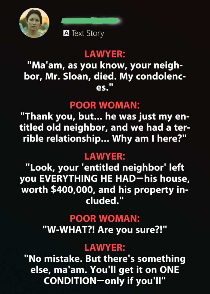 I always thought Mr. Sloan, my grumpy old neighbor, existed solely to torment me. From sabotaging my rose garden to complaining about my every move, he seemed to thrive on conflict. So when he passed away suddenly, I felt more relief than grief—until his lawyer summoned me to the reading of his will.