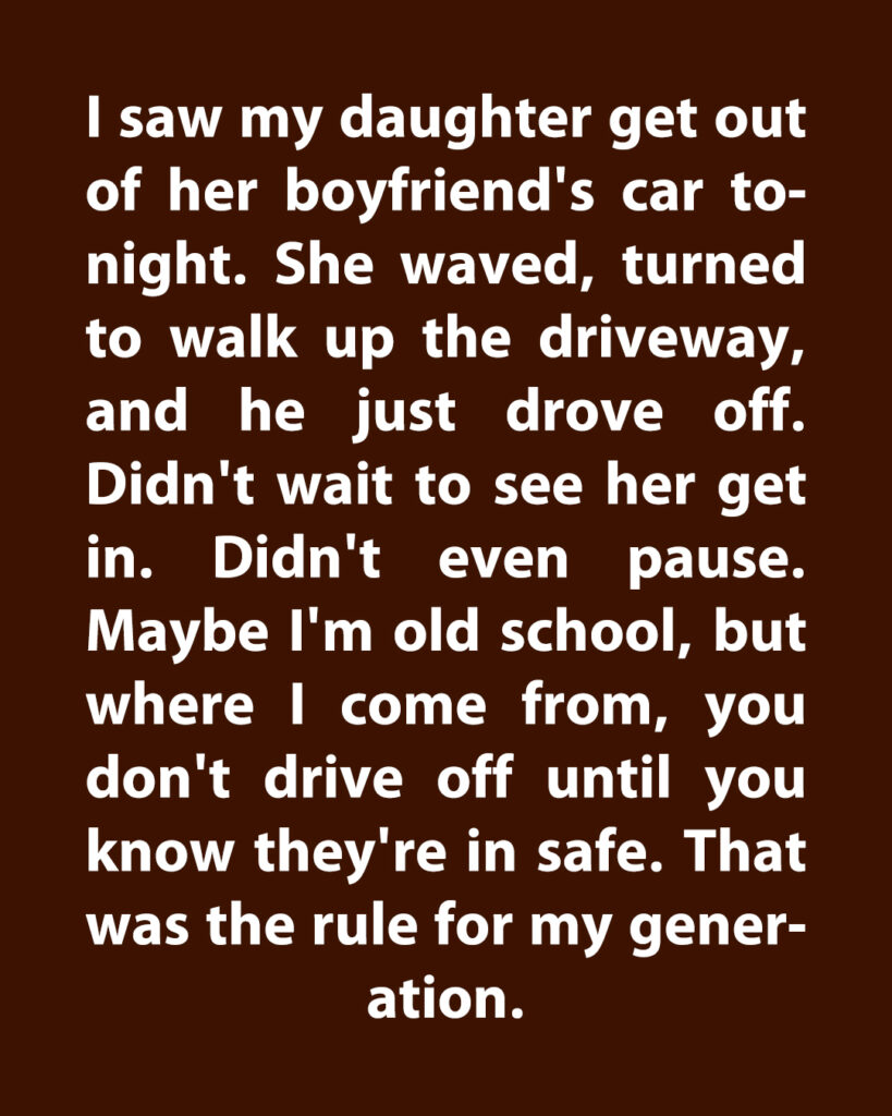 Tonight, I watched my daughter step out of her boyfriend’s car. She smiled, waved, and turned toward the house. He didn’t wait. No pause. No glance in the rearview mirror. Just drove off like she was a pit stop on his way to somewhere more important.