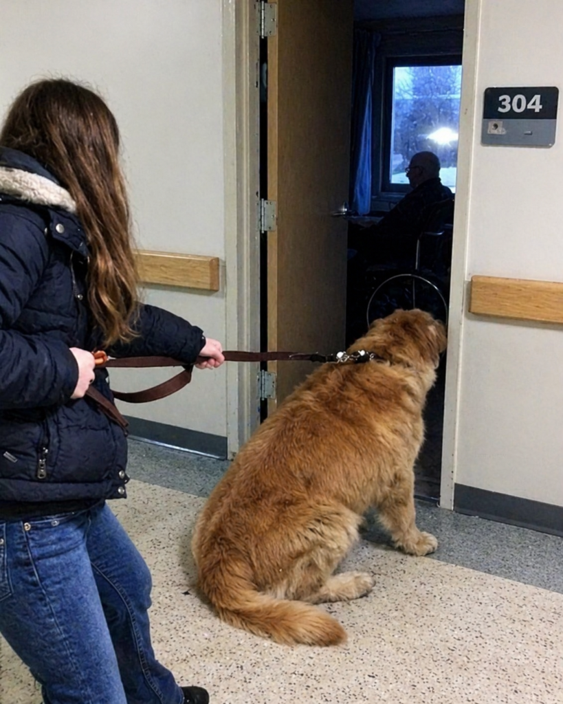 He simply sat beside the wheelchair, rested his heavy chin gently on Mr. Miller’s knee, and let out a long, quiet sigh.